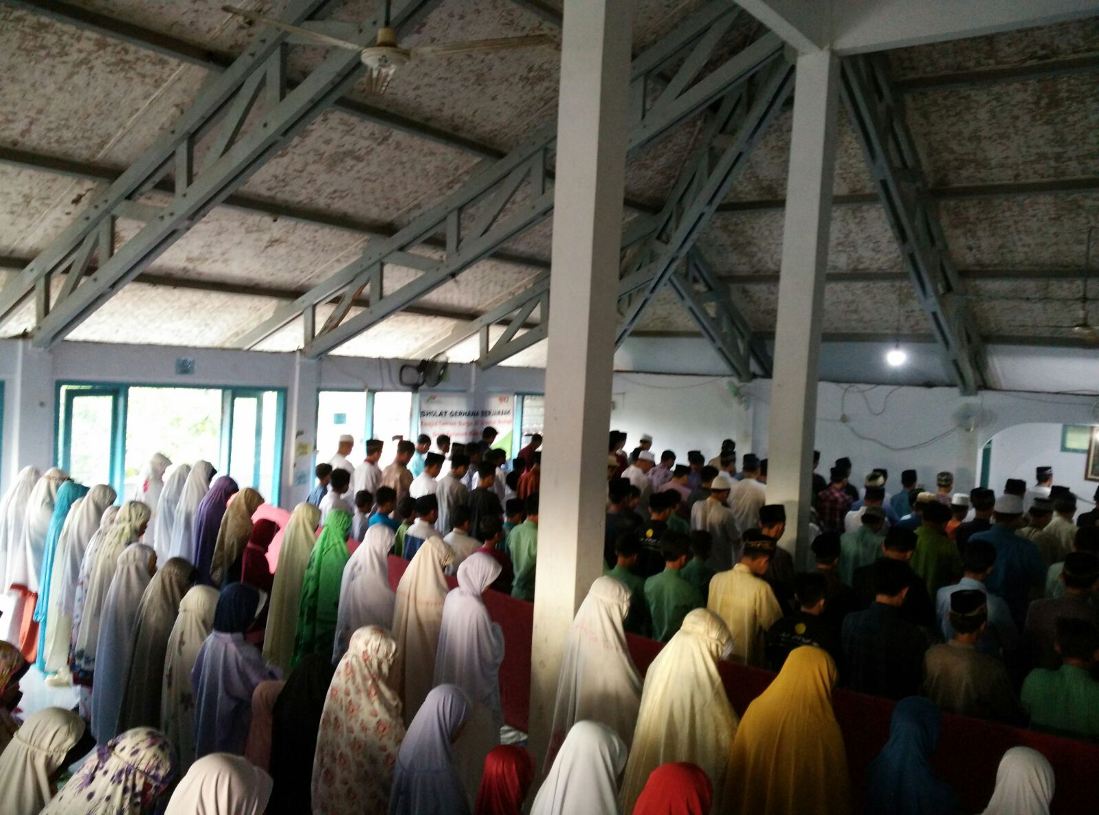 INDRAMAYU, Yayasan Masjid Nusantara (YMN) bersama dengan Relawan Inspira (RI) dari Rumah Zakat mengadakan shalat gerhana berjamaah di Pondok Pesantren Yatim Al Urwatul Wutsqa, Desa Terusan Kec. Sindang Kab. Indramayu. Takbir dan tahlil berkumandang sambil menunggu waktu shalat kusuf tiba saat itu. Shalat berjamaah gerhana ini dihadiri lebih dari 250 orang yang terdiri dari para santri, guru dan juga warga setempat. Selepas kegiatan shalat para Relawan pun membagikan bingkisan kepada jama’ah shalat.