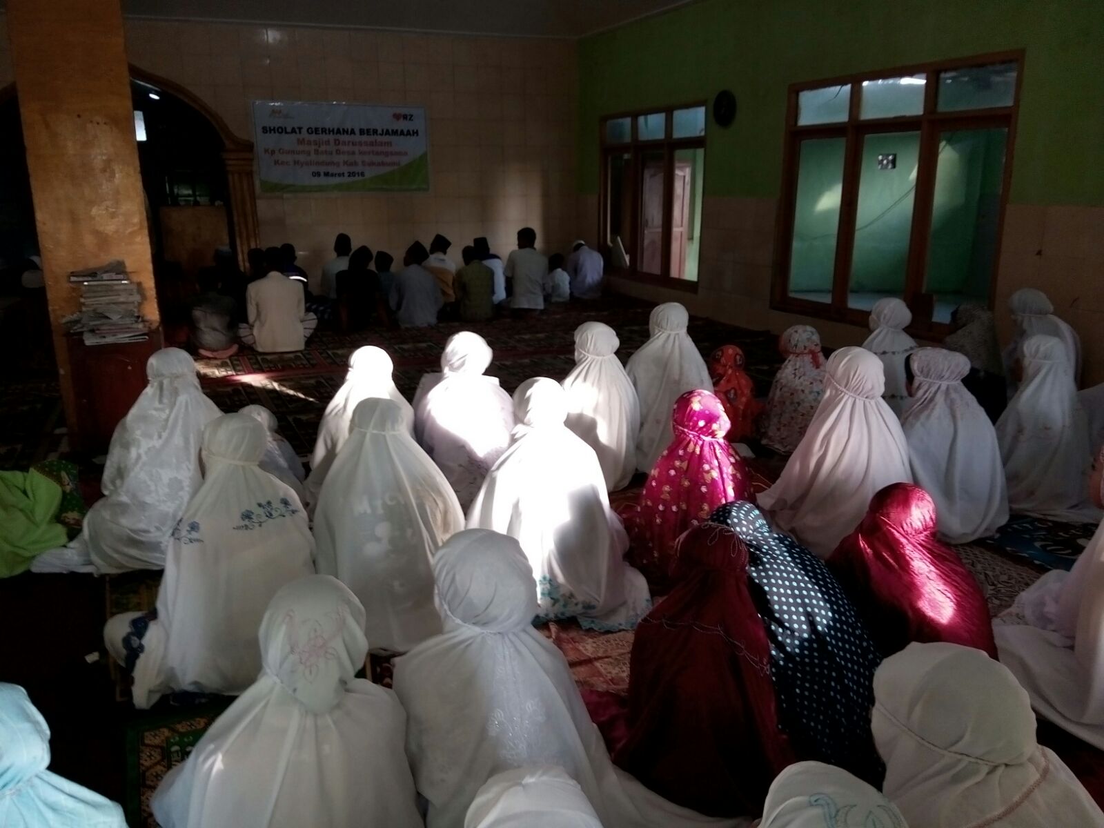 SUKABUMI, Yayasan Masjid Nusantara (YMN) bersama dengan Relawan Inspira (RI) dari Rumah Zakat mengadakan shalat gerhana berjamaah di Masjid Darussalam Kp. Gunung Batu Desa Kertangsana Kec. Nyalindung Kab. Sukabumi. Shalat sunnah gerhana ini dihadiri lebih dari 100 orang jama’ah Kp. Gunung Batu. Khutbah pun diisi mengenai hikmah dibalik peristiwa gerhana matahari oleh Ustadz Epen Supendi. Setelah shalat usai, DKM Masjid Darussalam bersama Relawan Inspira (RI) membagikan 50 bingkisan untuk anak yatim dan orang usia senja. Jamaah menyambut baik kegiatan ini, karena mereka diajak melaksankan sunnah shalat dan bersedekah kepada sesama.