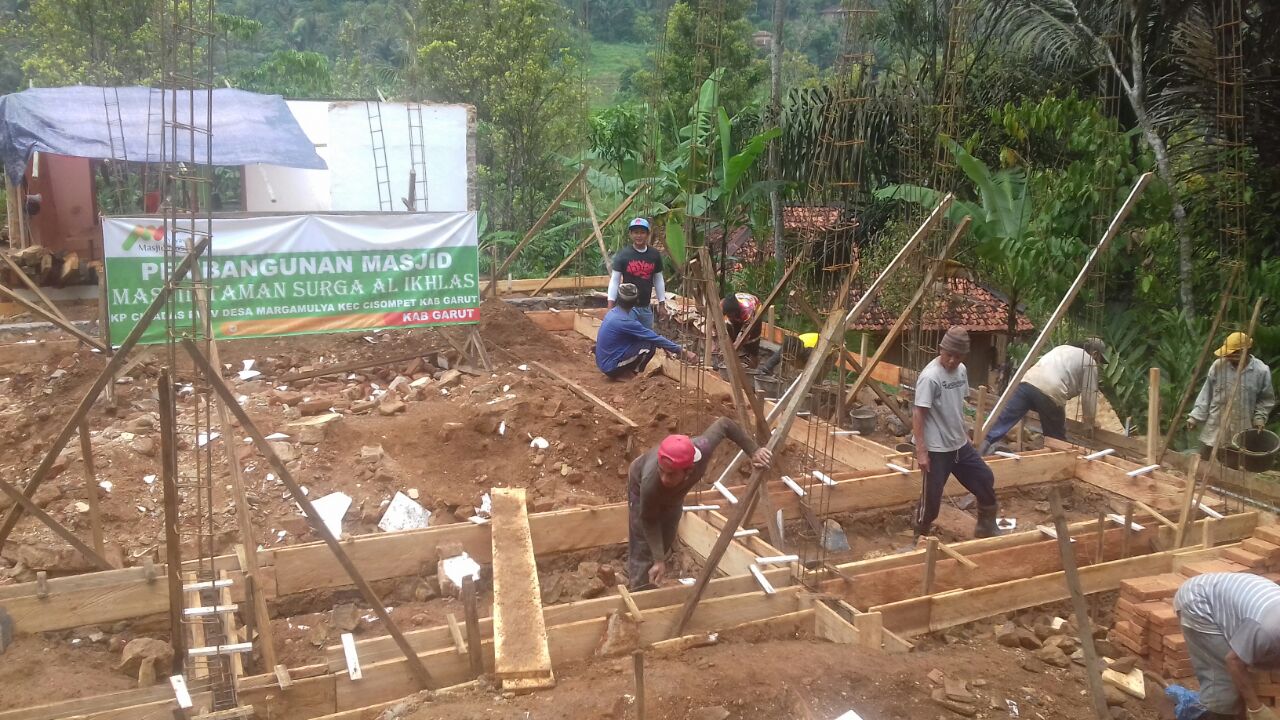GARUT, Yayasan Masjid Nusantara kembali melakukan pembangunan Masjid di Desa Margamulya Kp Cicadas Rw 05 Cisompet, Garut. Pembangunan masjid taman surga Al Ikhlas ini mulai pada tanggal 22 Agustus 2016. Alhamdulillah pembangunan masjid berjalan lancar, saat ini progress pembangunan sudah 40% berjalan (01/09).